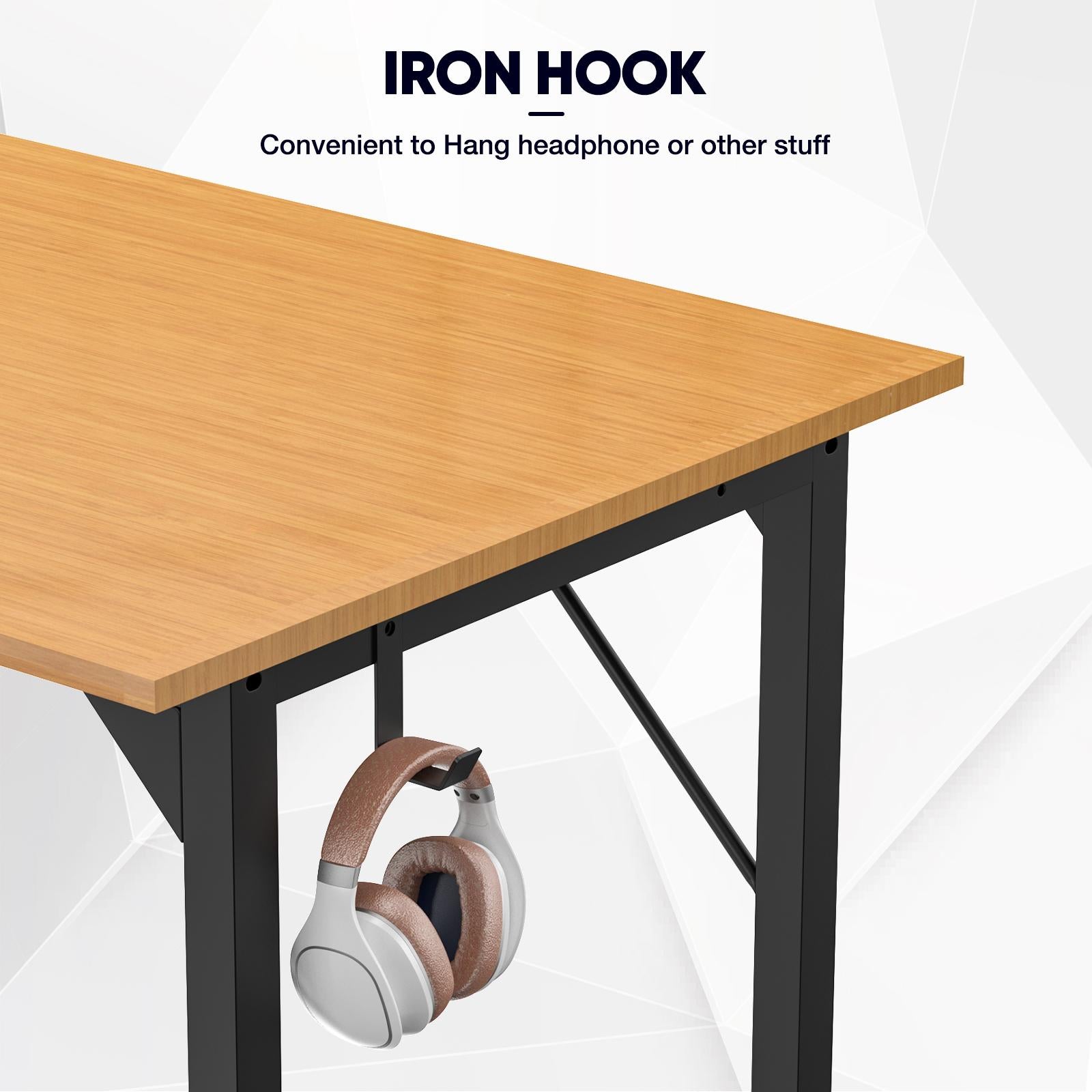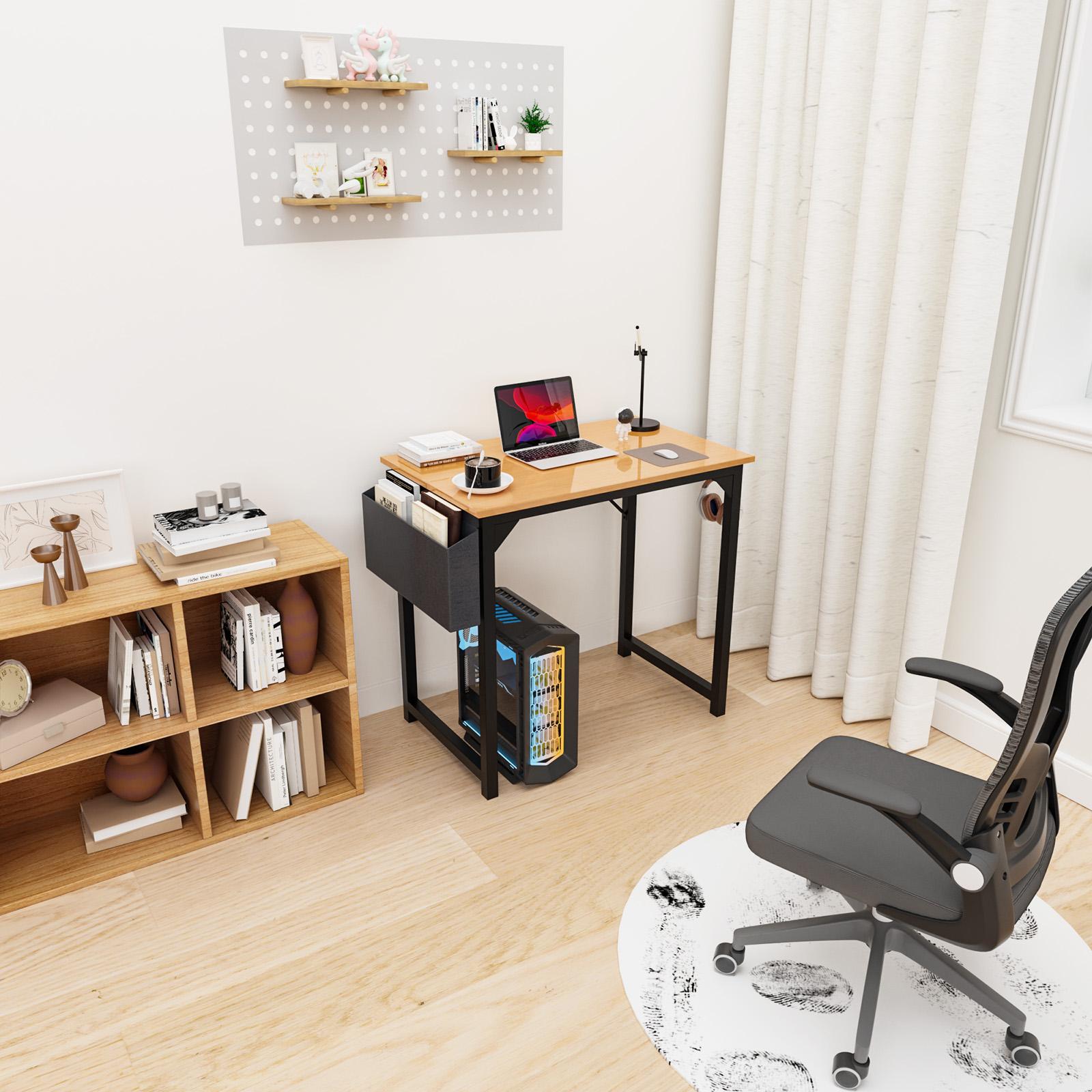 【Sturdy Premium Desk】Computer desk is made of thick high-quality particle board with scratch-resistant, anti-collision, waterproof and easy to clean, protecting home office desk surface from daily wear and tear. The metal frame and corner reinforced structure provide reliable support for all-day use, weight capacity up to 176 lbs. It is an indispensable desk for home or office. 【Classic and Simple Style】The computer desk's simple yet stylish design style can match most home decor styles. The spacious desktop space can easily accommodate laptops, coffee mugs, greenery, keyboards, documents and more. It is also a decent gift for your friends and family on festivals, birthday, New Year, housewarming. 【Chic Storage Design】The computer desk is designed with a side storage bag and iron headphone hook. You can put your magazine, files or books in the storage bag to gain more desk space. The headphone hook can hang your headphones or bag. Help you better allocate desktop space. 【Widely Used & Multiple Sizes】The desk with storage bags and iron headphone hook works perfectly as a computer desk, office desk, writing desk and study desk, ideal for bedroom, home, office reading room, study room or dorm room. There are 5 sizes to choose from to fit any room. Smaller sizes are available for bedrooms and study rooms, while larger sizes can be used for offices, reading rooms. 【Quick Assembly】Quick and easy to assemble, it takes approximately 20 minutes to complete. A detailed instruction manual and all tools needed for assembly are included. Don't hesitate any longer, come and buy the work or study desk for you or your family.