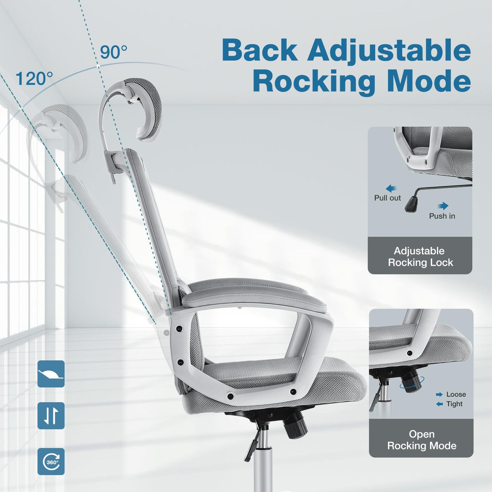 【Multi-functions Mechanism】 - This mesh office chair has many adjustable features to ensure you to find a good seat position. The headrest and the seat could go up and down, the backrest could move forward and back,all-round care for your spine health.